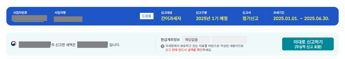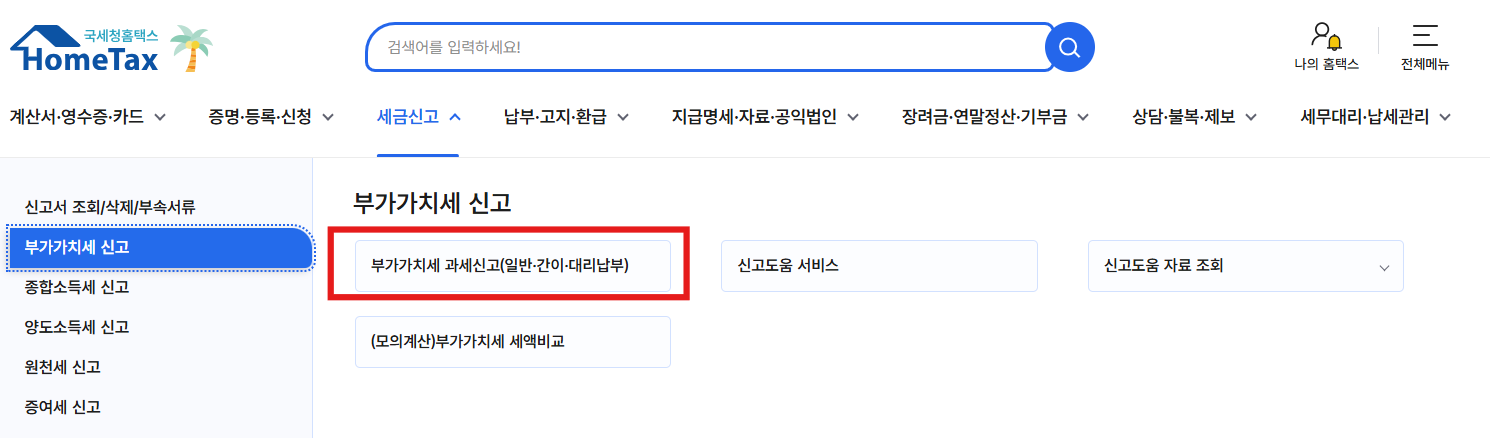 세금신고 > 부가가치세 신고 > 부가가치세 과세신고(일반,간이,대리납부)