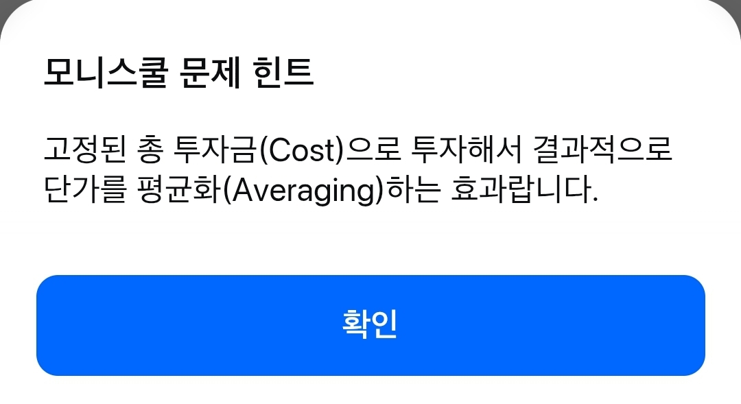 삼성카드 모니스쿨 4교시 금융영역 일정한 금액으로 주식을 모으면 주가가 낮을 때는 주식을 더많이 주가가 높을 때는 더적게 사게돼요 정답