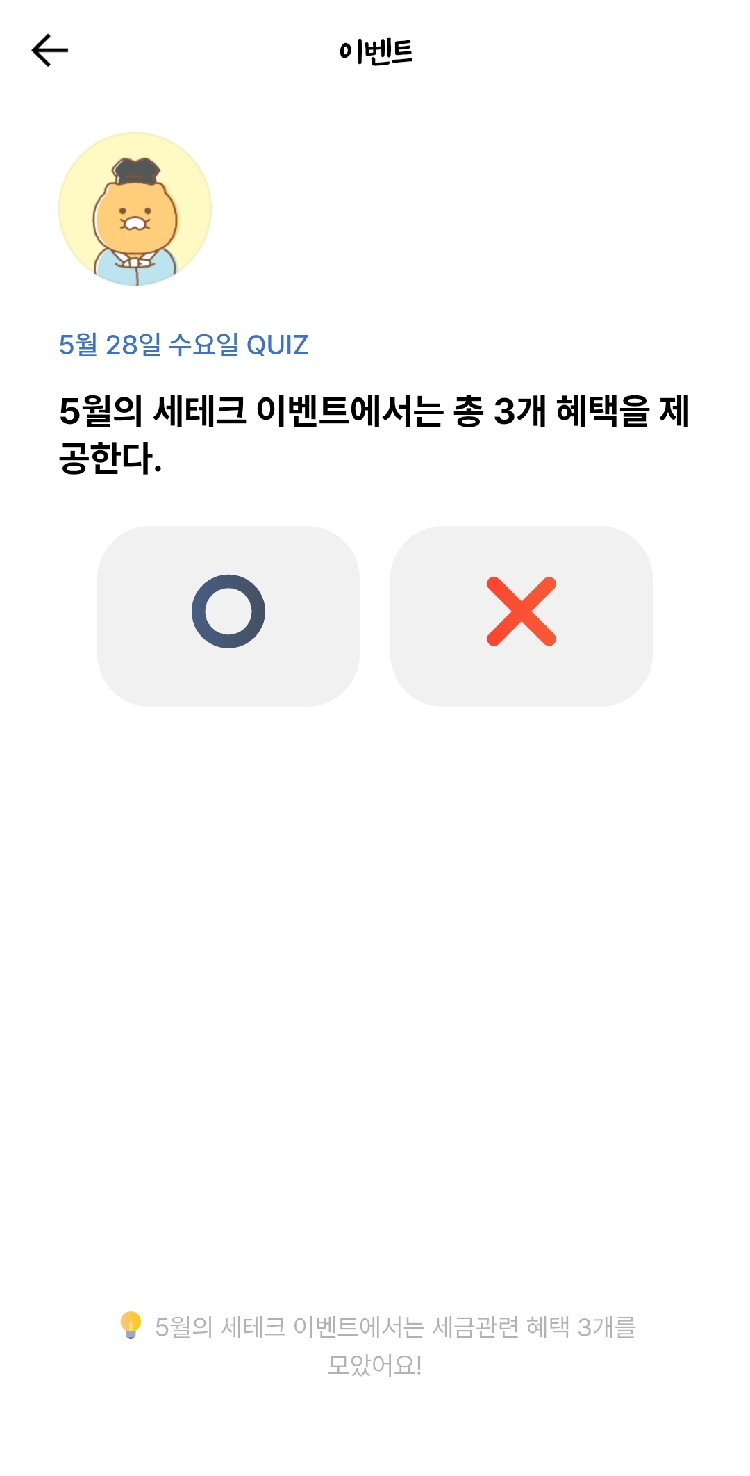 오늘은. 카카오뱅크 OX퀴즈 5월28일 오월의 세테크 이벤트에서는 총 3개 혜택을 제공한다. 정답 알아볼게요