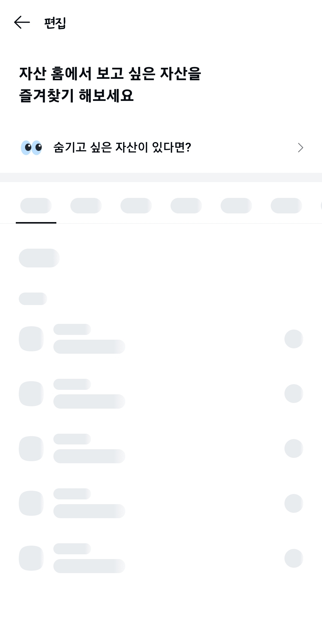 OOO 에서 자주 쓰는 자산 즐계찾기로 모아보거나 보고 싶지 않은 자산은 숨길 수 있어요