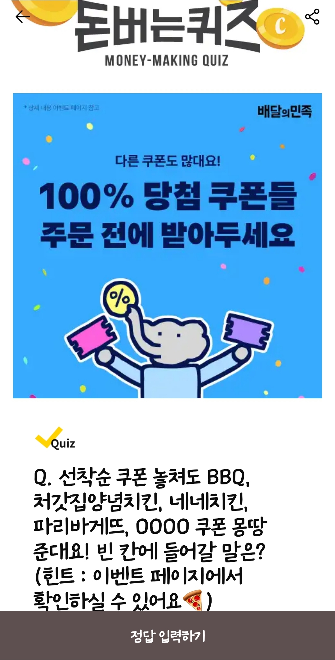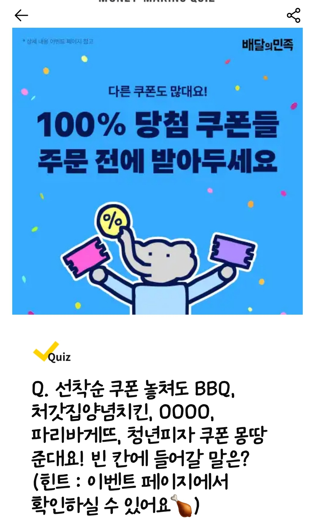 캐시딜 돈버는퀴즈 8월9일 배달의민족 정답 알아볼게요