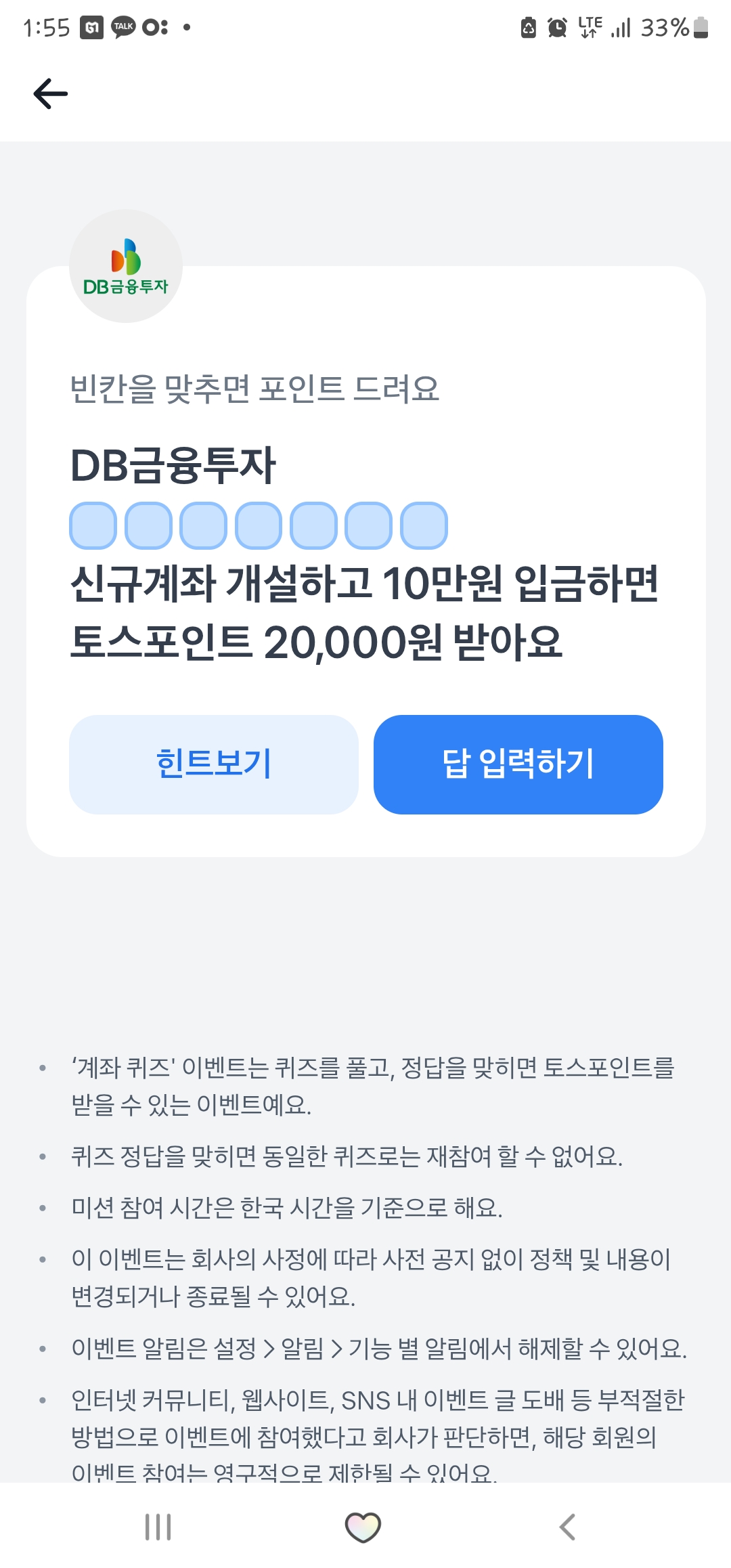 3월13일 토스 DB금융투자 신규계좌 개설하고 10 만원 입금하면 토스포인트 20,000원 받아요