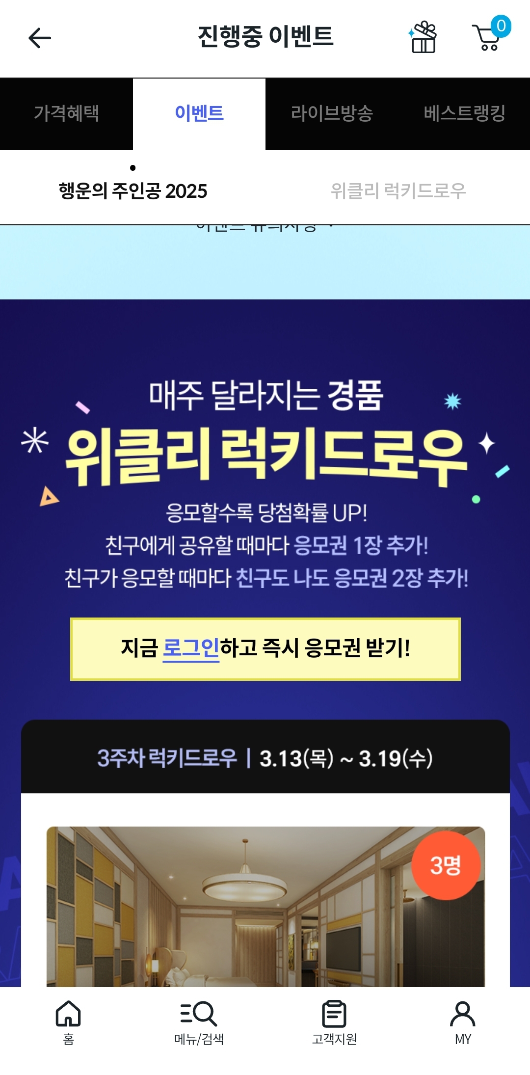 매주 달라지는 경품, OOO 럭키드로우 !