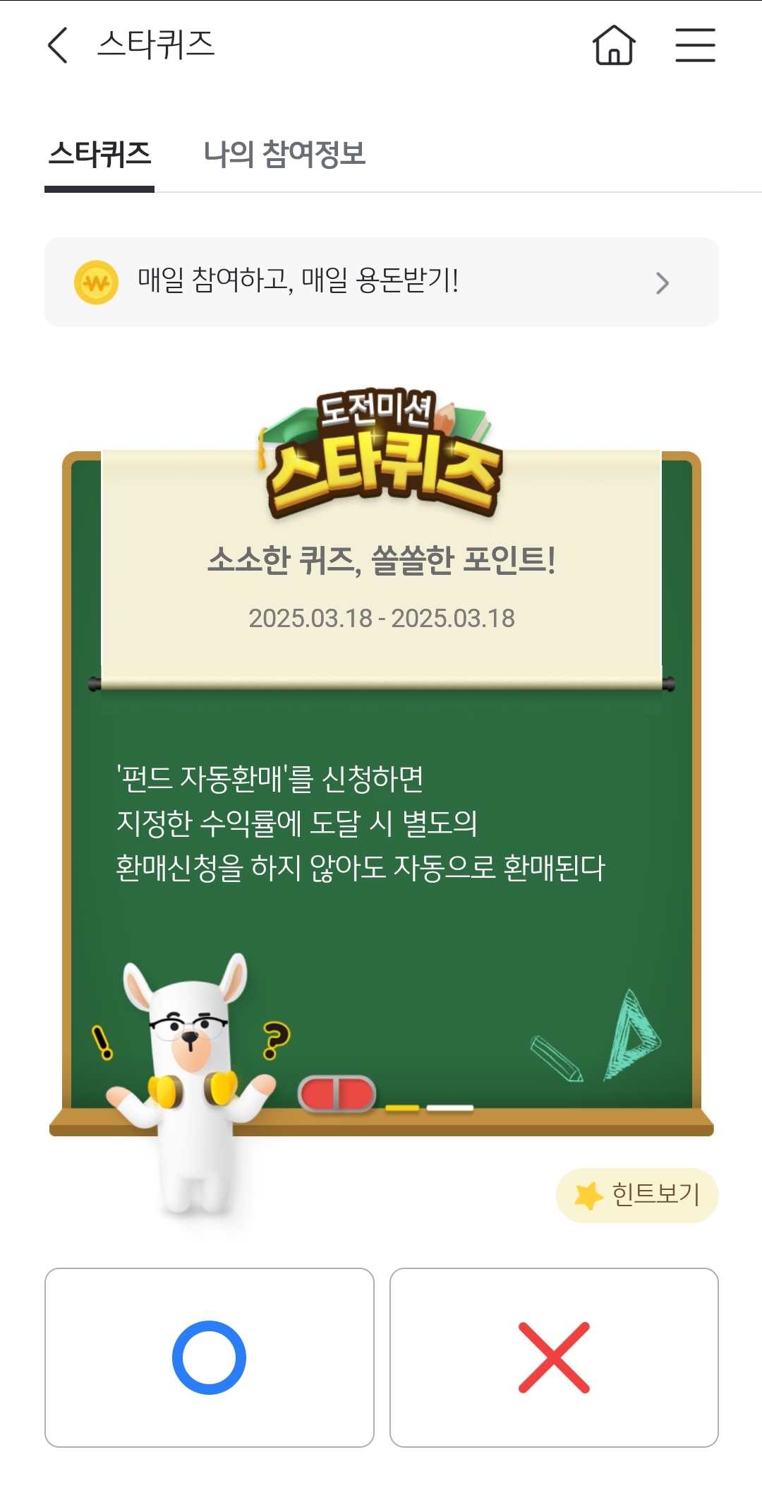 3월18일 KB스타뱅킹 스타퀴즈 펀드 자동환매를 신청하면 지정한 수익률에 도달 시 별도의 환매신청을 하지 않아도 자동으로 환매 정답