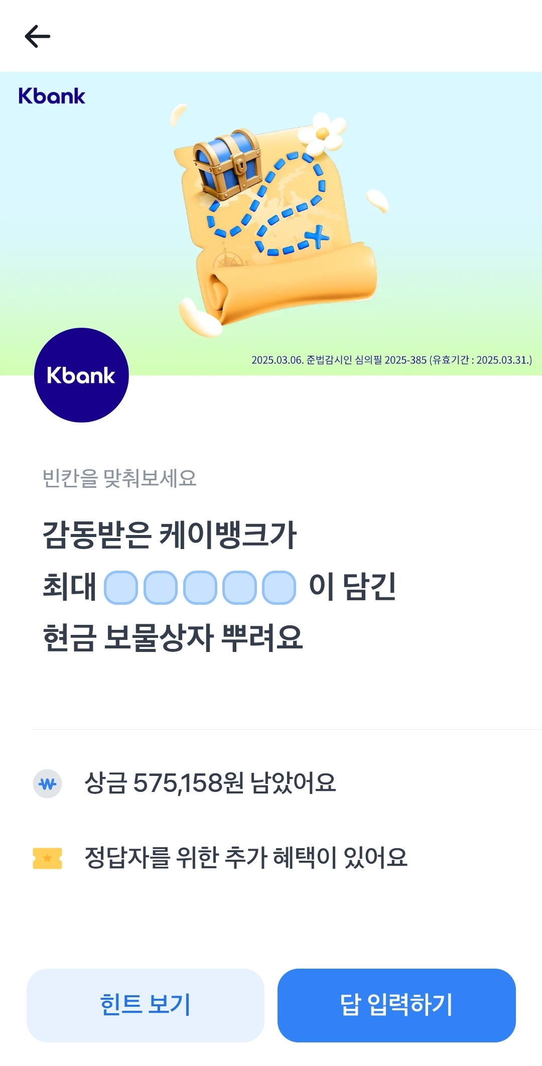 3월21일 토스 행운퀴즈 감동받은 케이뱅크가 최대 OOOOO 이 담긴 현금 보물상자 뿌려요 정답 알아볼게요