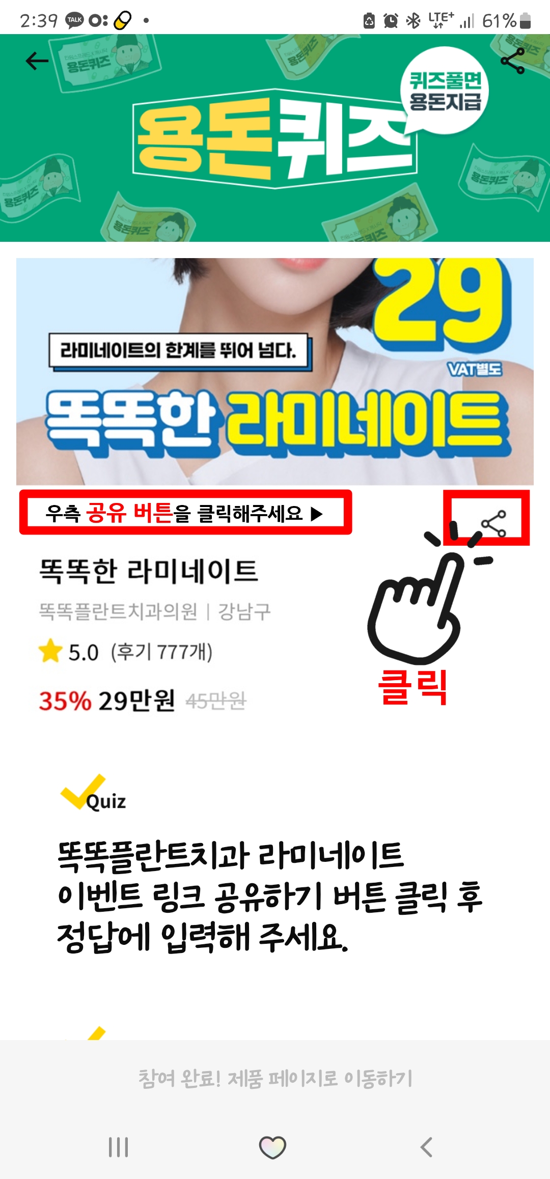 똑똑한 라미네이트 29만원 공유버튼 클릭 시 나오는