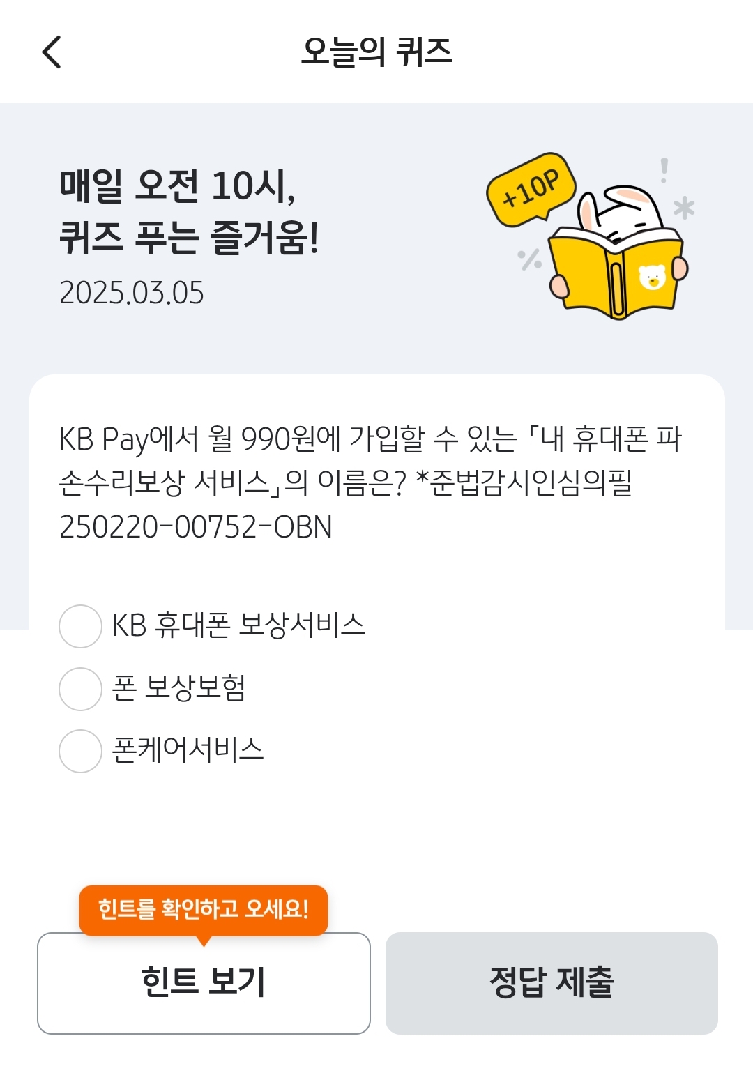 KB Pay에서 월 990원에 가입할 수 있는 [내 휴대폰 파손소리보상 서비스]의 이름은?