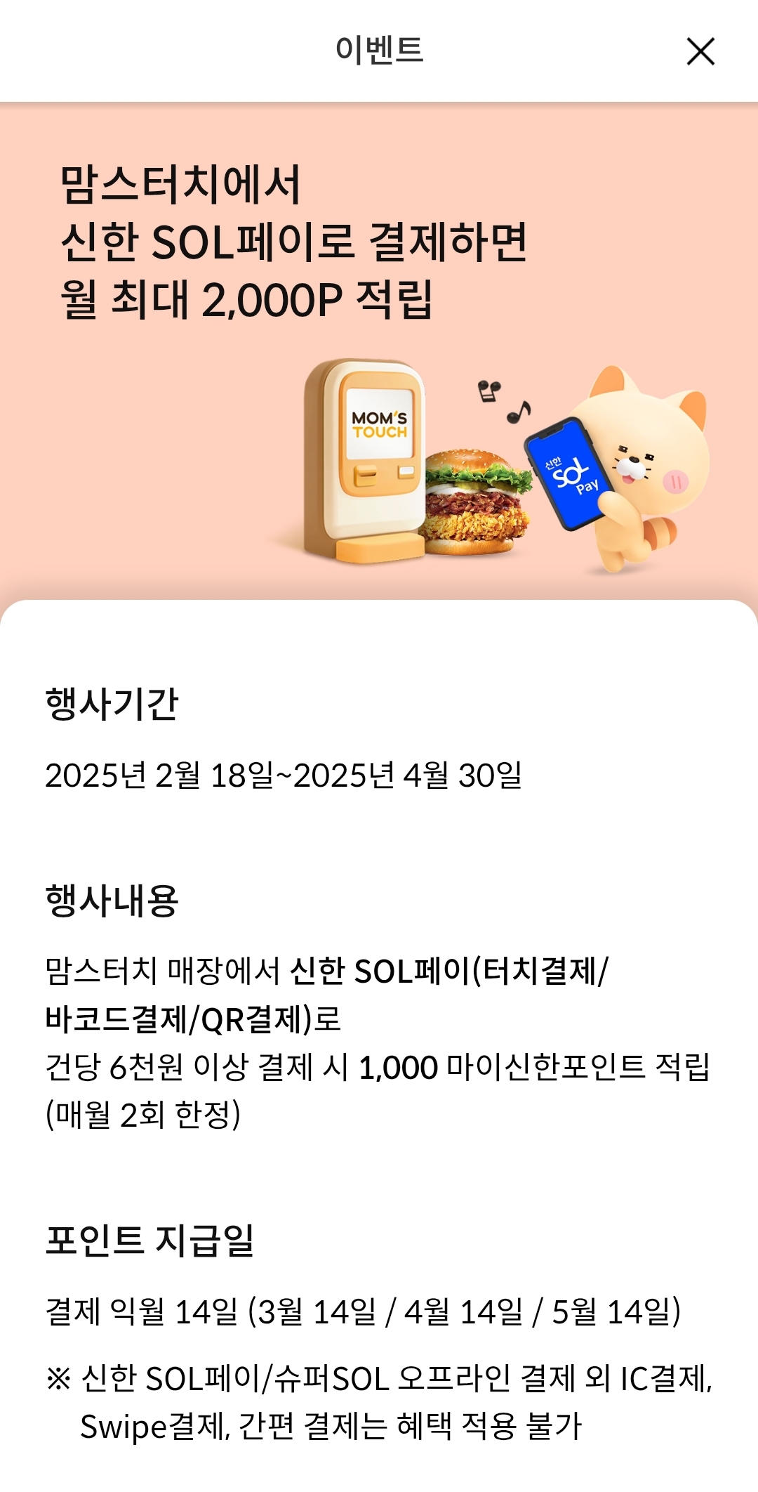 4월1일 신한 쏠페이 신한 sol 페이로 결제 시 월 최대 2000P를 받을 수 있는 이벤트에 참여하면 언제 포인트 지급 정답 알아볼게요