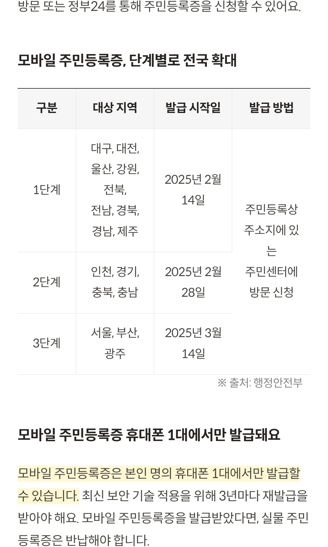 주민등록증을 스마트폰에서 사용할 수 있도록 디지털화시킨 '모바일 주민등록증'은 실물 주민등록증과 동일한 법적 효력을 가진다