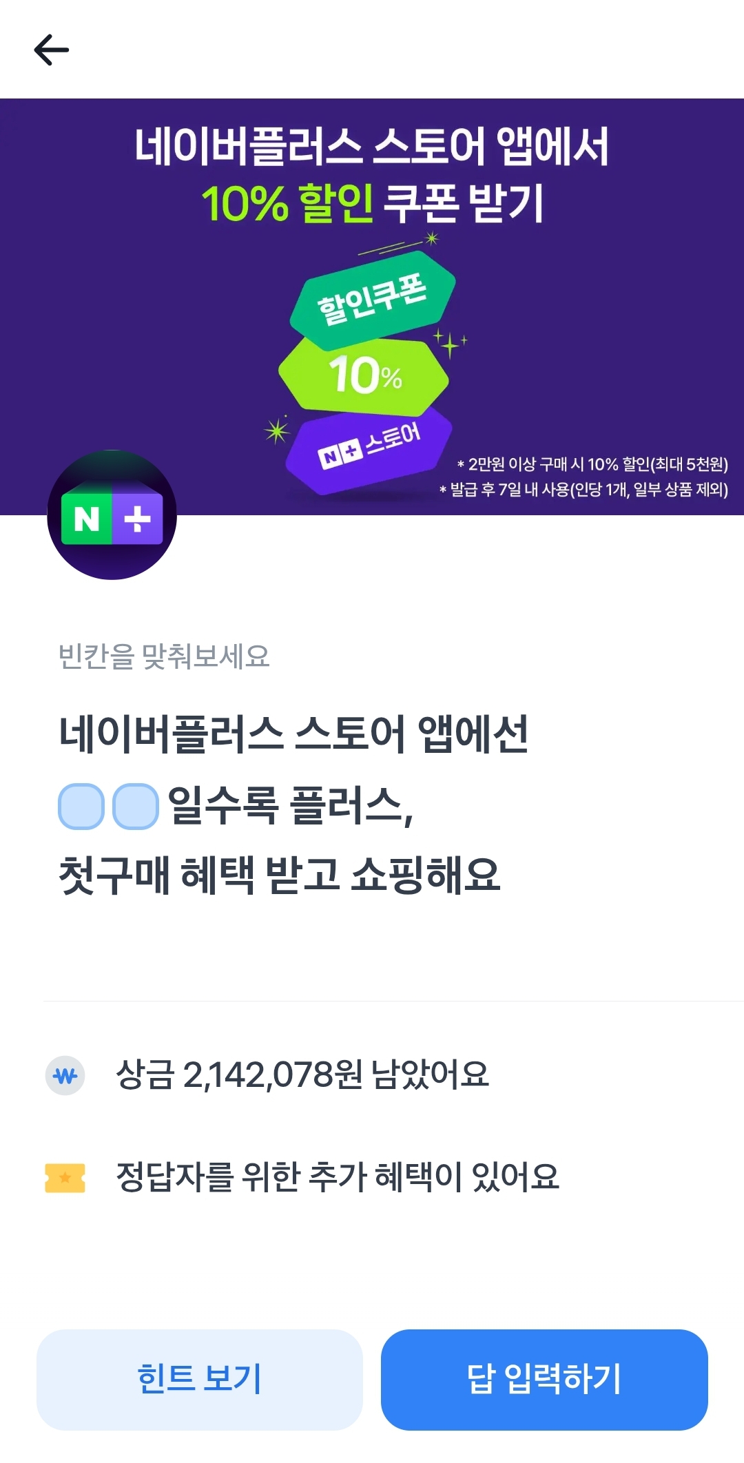 4월10일 토스 행운퀴즈 네이버플러스 스토어 앱에서는 oo 일수록 플러스. 첫구매 헤택받고 쇼핑해요 정답 알아볼게요