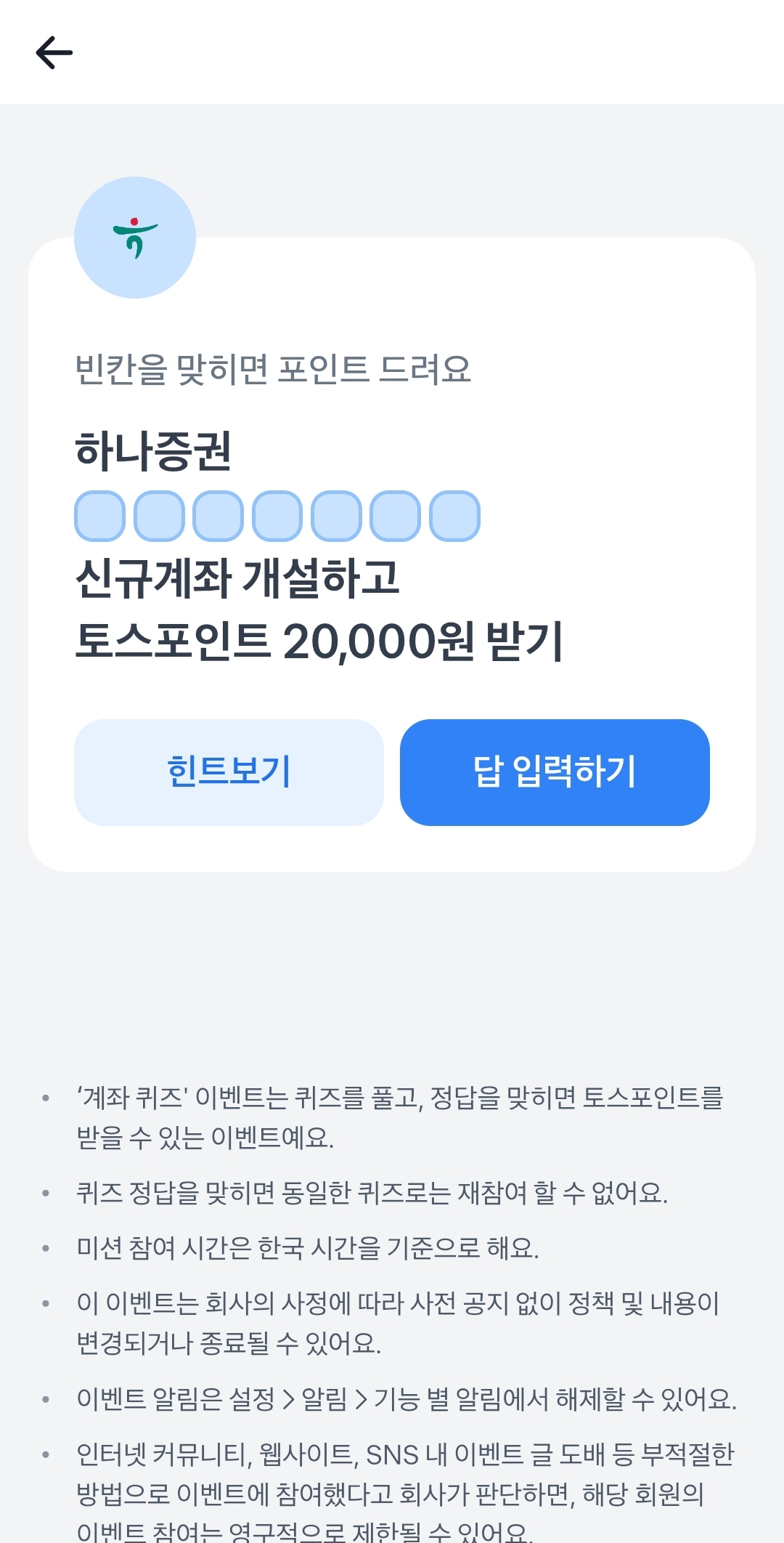 4월14일 토스 빈칸퀴즈 하나증권 OOOOOOO 신규계좌 개설하고 토스포인트 20000원 받기 정답 ㅂㄷㅁㅈㅎㅁㅁ 알아볼게요