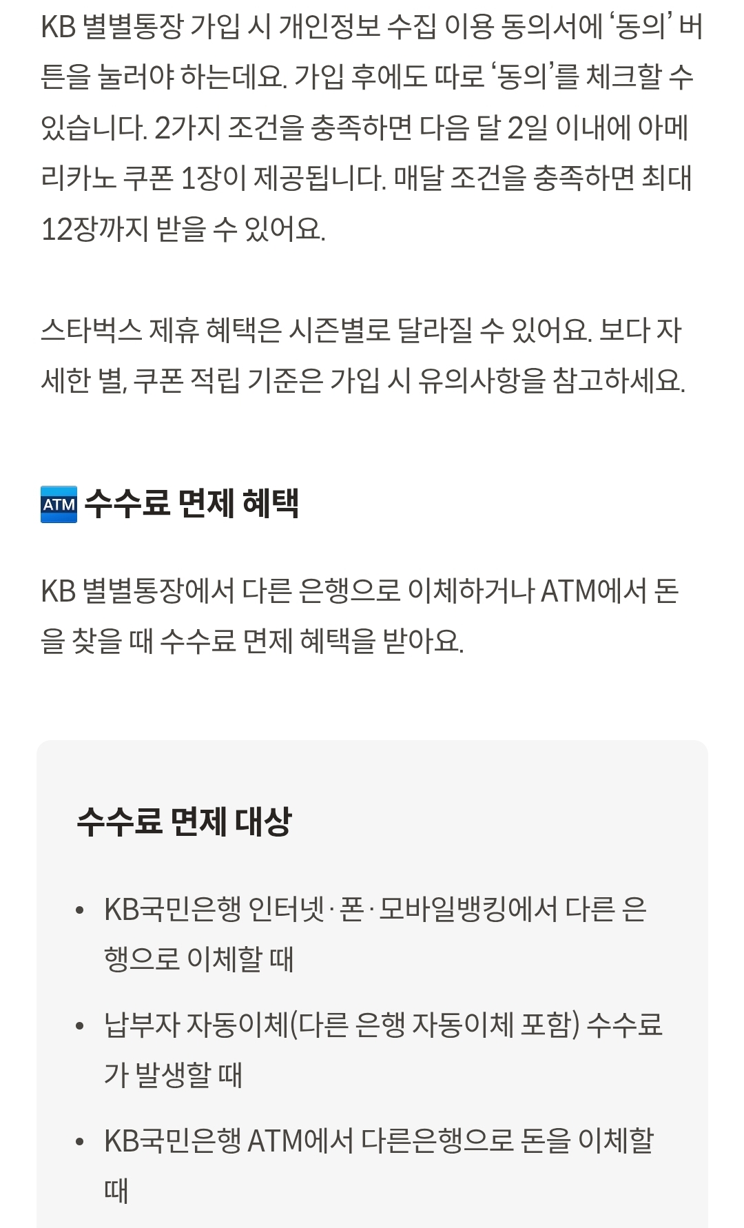 스타벅스와 제휴한 KB별별통장의 설명으로 틀린 것은?