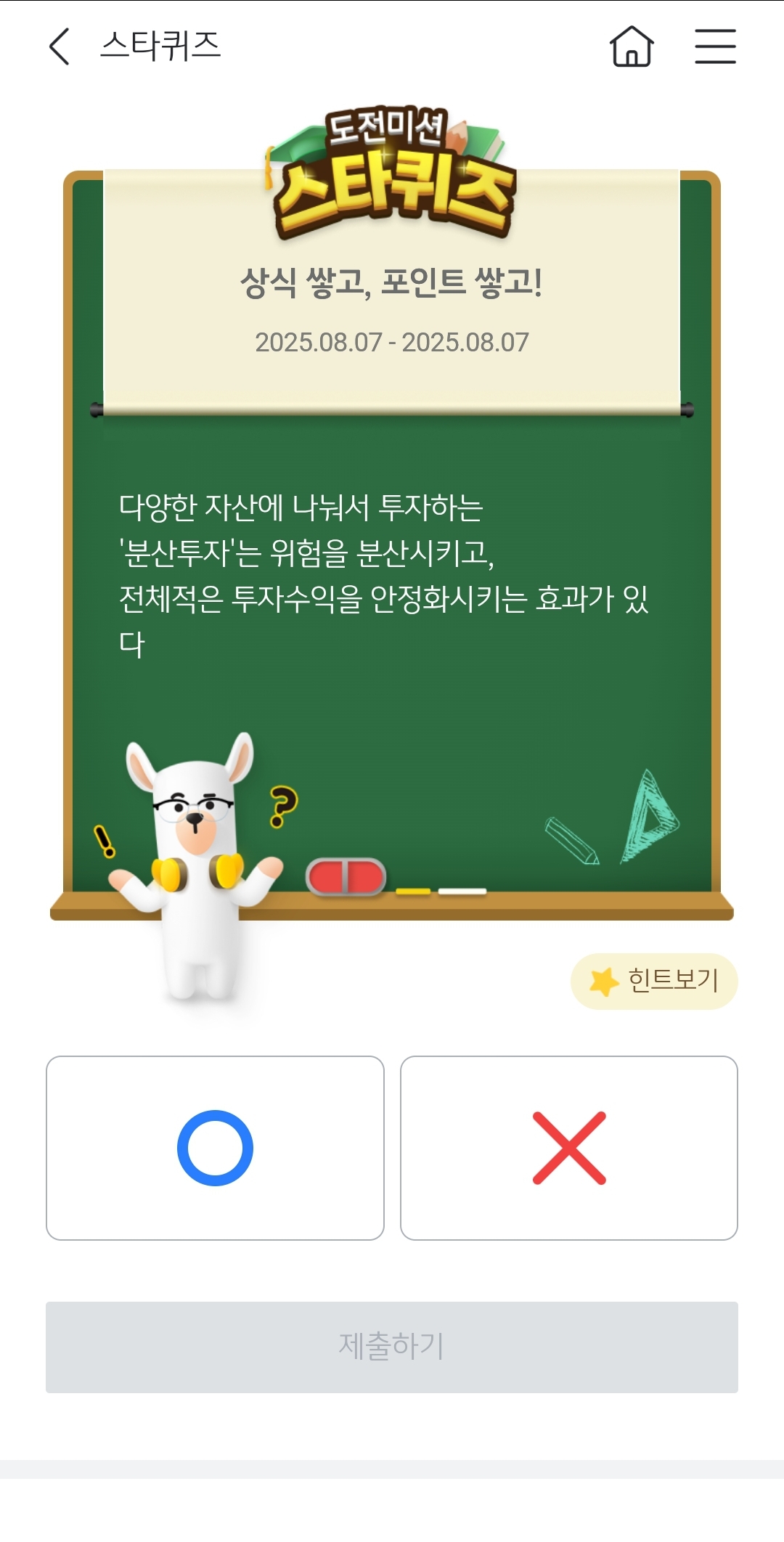 KB 국민은행 스타퀴즈 8월7일 다양한 자산에 나눠서 투자하는 분산투자는 위험을 분산시키고 전체적인 투자수익을 안정화시키는 효과가 있다 정답
