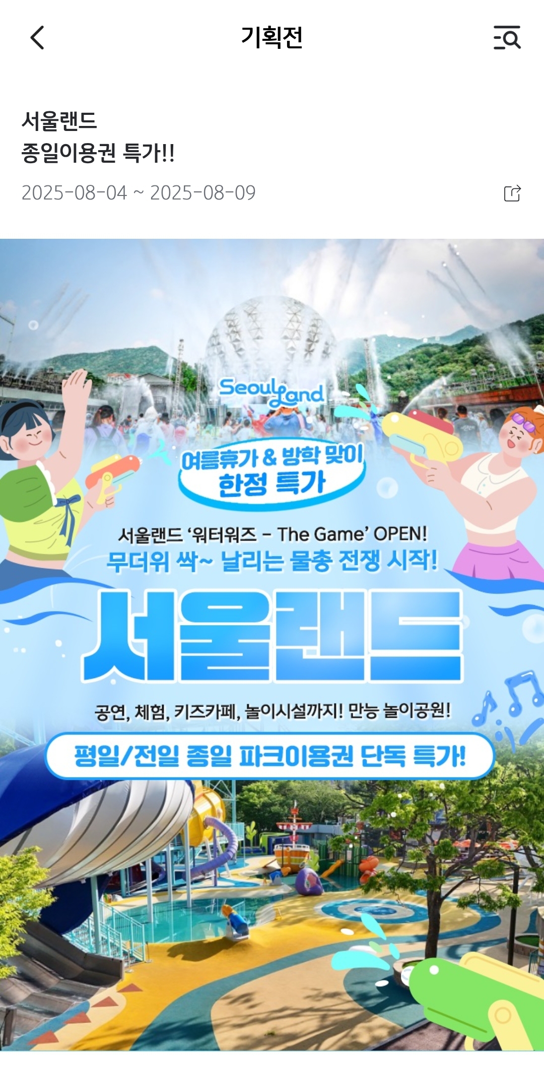 KB PAY 오늘의퀴즈 8월8일 서울랜드에서 진행 중인 워터 축제의 이름 정답 알아보아요