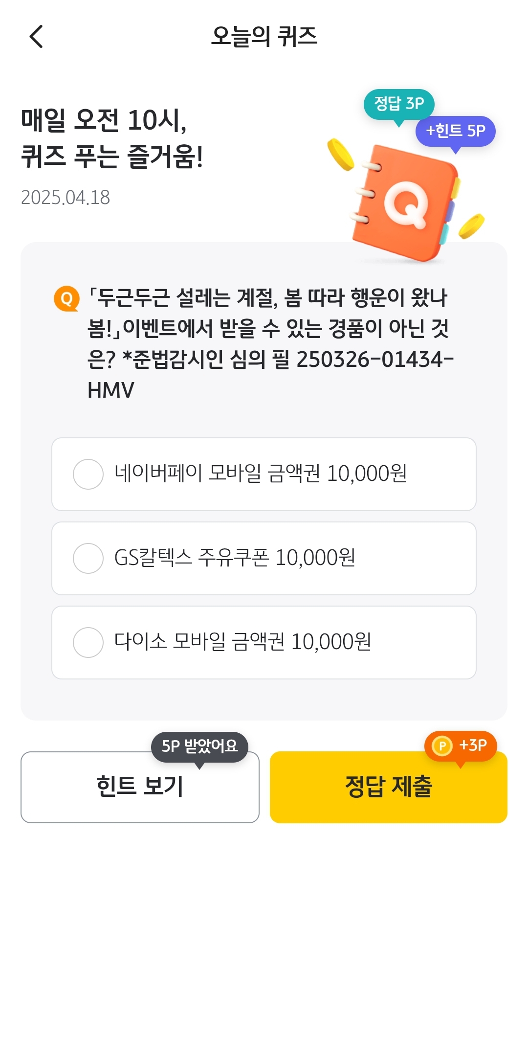 [두근두근 설레는 계절, 봄 따라 행운이 왔나 봄! ]이벤트에서 받을 수 있는 경품이 아닌 것은 정답